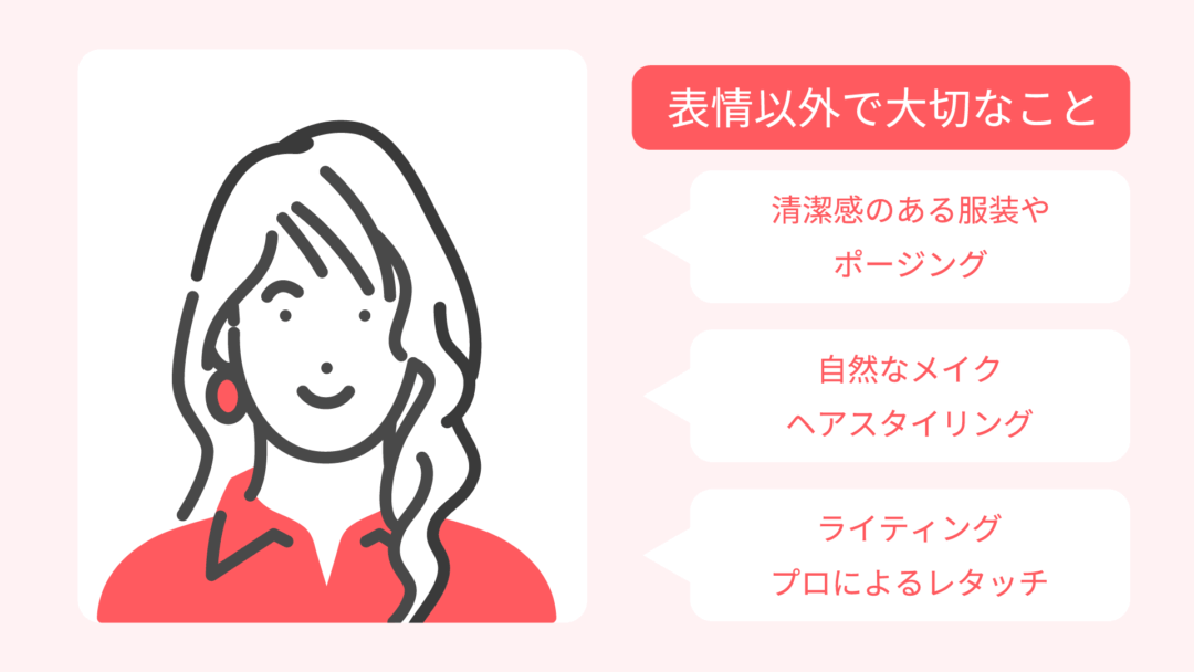 無理に笑顔をつくると逆に不自然になってしまうため、自然な笑顔を意識することが大切です。