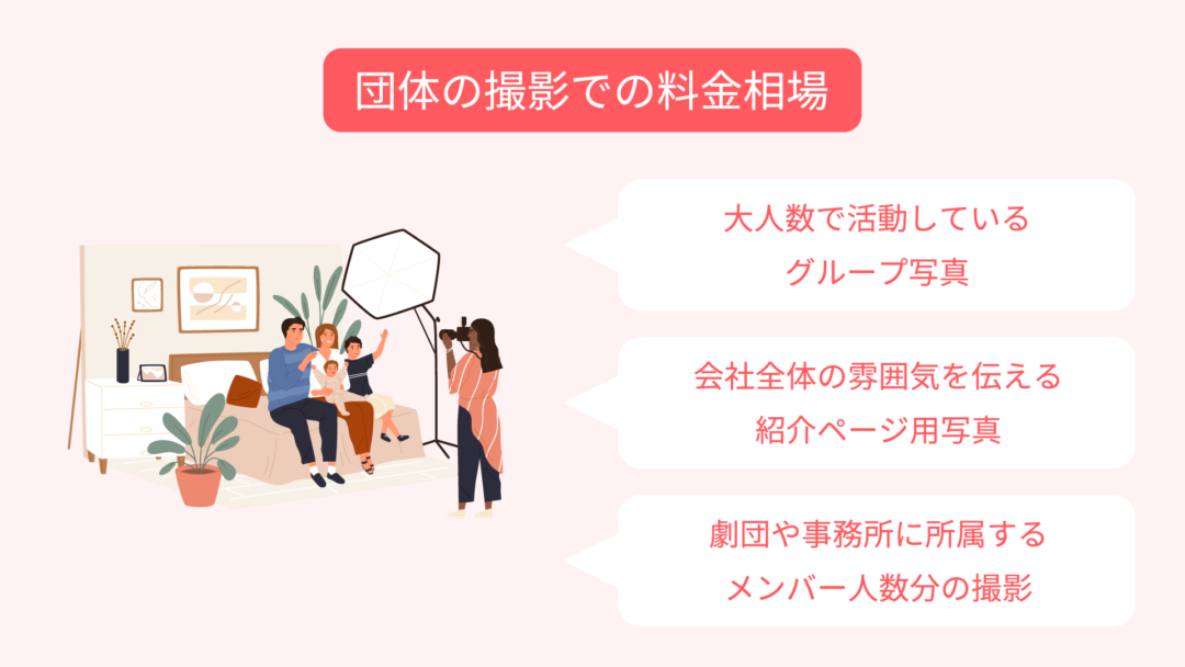 このような場合は、被写体自体は個人写真であっても、撮りたい人数が多数となるので、撮影人数により料金の変動がある場合も多いです。